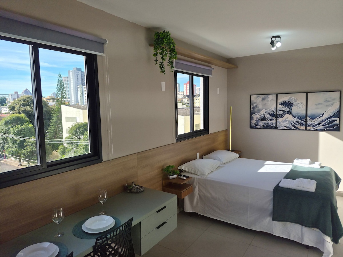 Descubra o equilíbrio perfeito entre conforto e praticidade no nosso Smart Studio em São Carlos. Excelente localização, ao lado da USP, Mc Donalds, Mercado e Rodoviária. Ideal para casais, famílias pequena, viajantes a trabalho ou estudantes, o espaço foi planejado para oferecer uma estadia completa e acolhedora. Desde um work from home fora de casa a um lugar silencioso para estudo e confortável.