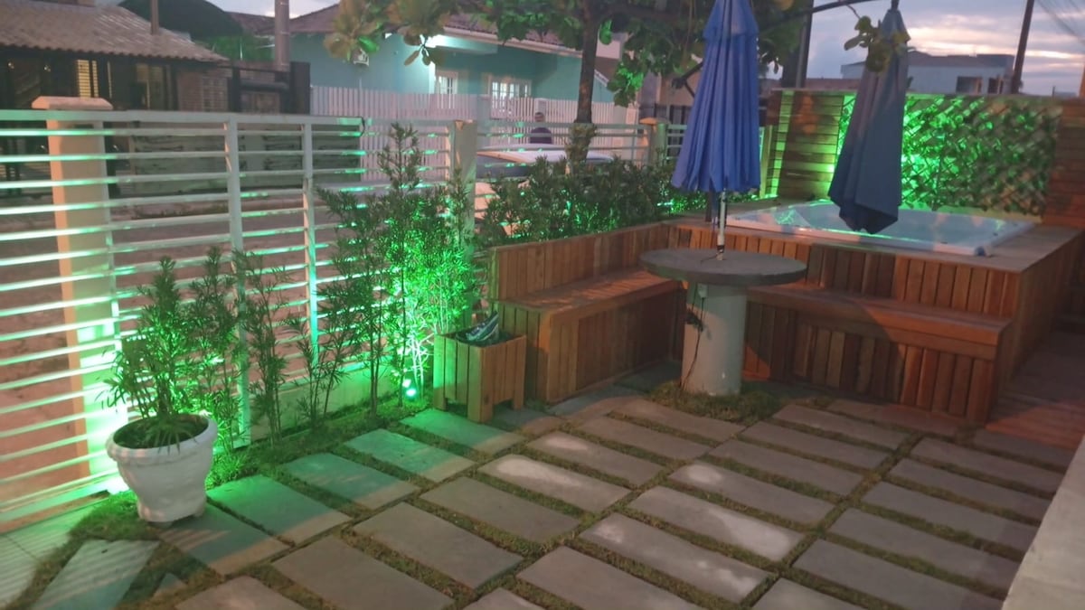 Imagina chegar da praia e relaxar direto na jacuzzi, em uma casa pensada para descanso de verdade? A Morada Beach é completa e confortável, com quartos com ar-condicionado, camas aconchegantes, roupas de cama e toalhas. Cozinha equipada, sala com TV e área externa com jacuzzi e pergolado, cadeiras de praia, máquina de gelo, Wi-Fi, Netflix Fica a cerca de 4 minutos a pé da praia que teve alargamento de areia, apenas 1 quadra, perto de mercados e restaurantes. Região tranquila, ideal