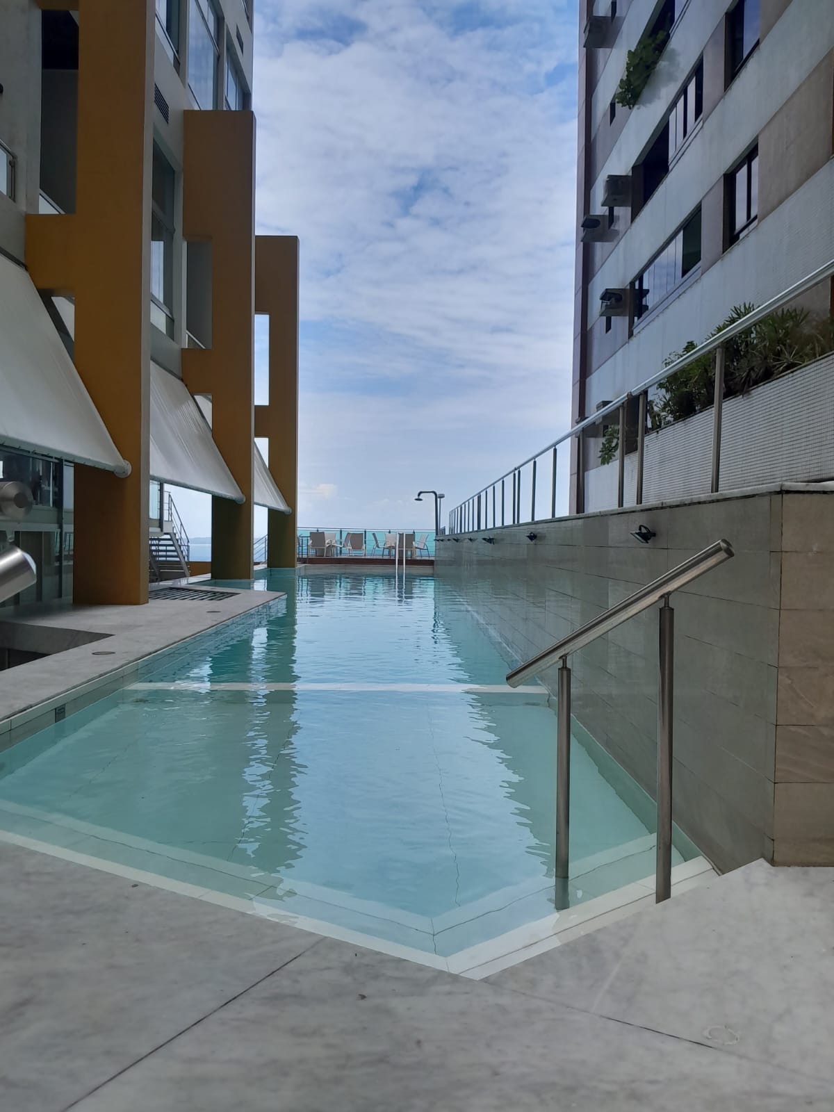 Raffiniertes Loft mit herrlichem Meerblick. Das gemütliche Hotel liegt im Smart Farol da Barra, nur einen Block vom Strand von Farol da Barra entfernt, mitten im Karnevalskurs von Salvador. Es liegt in der Nähe von Morro do Cristo, Praia do Porto da Barra, Shopping Barra, aber vor allem Farol da Barra, die 5 Gehminuten entfernt ist. Die Eigentumswohnung verfügt über einen gut ausgestatteten Fitnessraum, einen Partyraum, Coworking, Wäscheservice und einen Pool auf dem Dach.