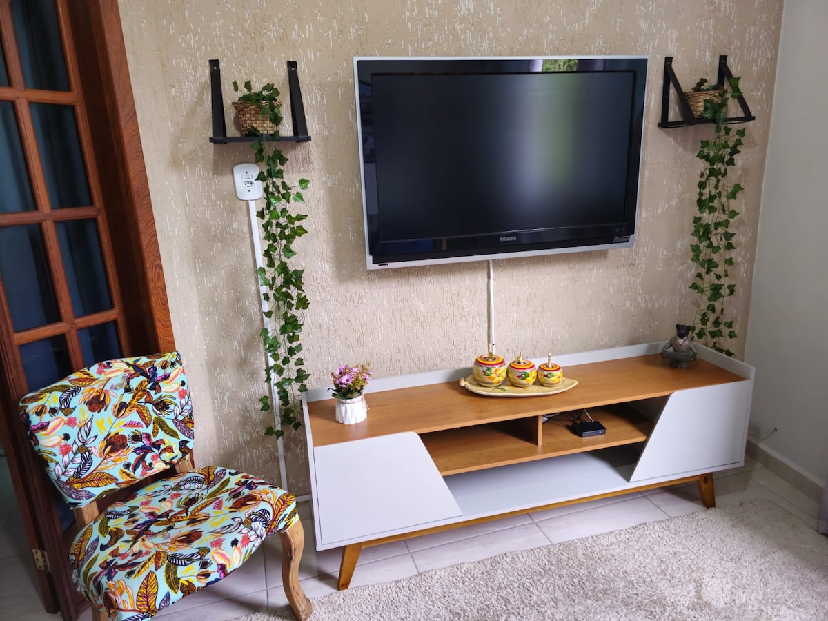 Kommen Sie und lernen Sie São João Del Rei kennen und bleiben Sie an einem ruhigen und gastfreundlichen Ort, an dem Sie sich wie zu Hause fühlen, als ob es Ihr Zuhause wäre. Wo Sie sich wohlfühlen können. Meine Familie empfängt Ihre Familie, als wäre sie unsere eigene. Das Haus bietet zwei Schlafzimmer, eines mit einem Doppelbett, TV und Kleiderschrank, das andere mit einem Doppelbett, einem Einzelbett, einem Doppelbett und einer zusätzlichen Matratze. Es gibt ein Wohnzimmer und eine Küche mit allen Haushaltsutensilien. Das Haus befindet sich im zweiten Stock. Es gibt Treppen.