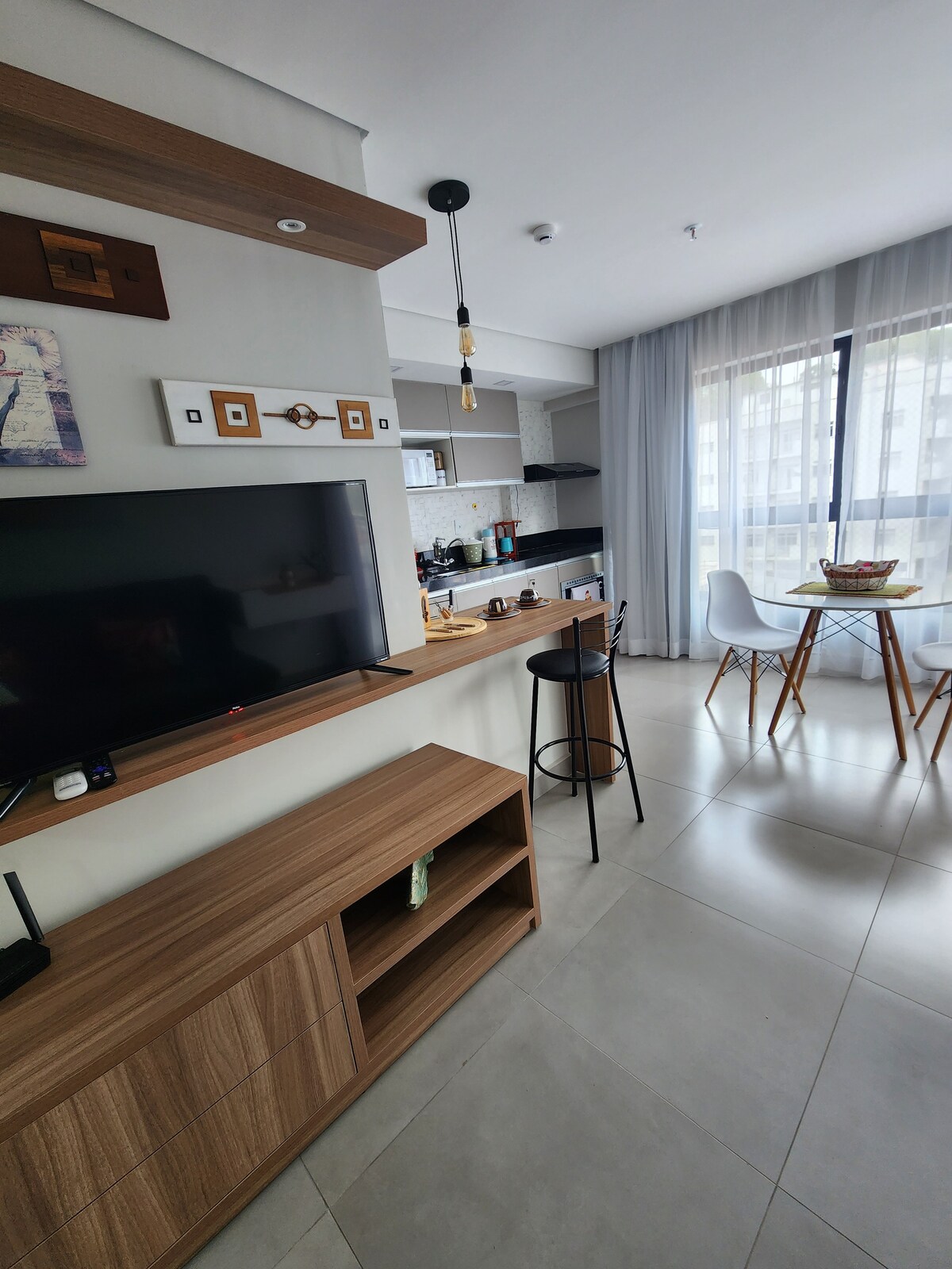 Studio moderno em prédio novo, a 1 minuto do hospital, perfeito para quem busca conforto e praticidade. Ambiente funcional com sofá-cama, cozinha equipada, quarto com ar-condicionado e TV Smart. Piscina, academia e churrasqueira, garagem coberta, elevador e self check-in para total autonomia. Estilo, conveniência e tranquilidade em um espaço acolhedor.