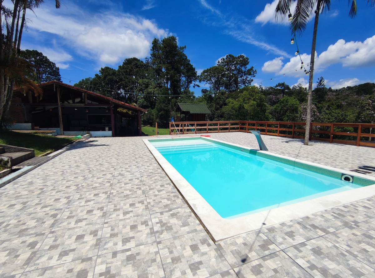 Sítio 3 Schlafzimmer, Wohnzimmer, Küche, Freizeitbereich, Swimmingpool, Parkplatz, 3 Badezimmer. Tolle Umgebung, um die Natur mit der Familie zu genießen. Entspanne dich mit der ganzen Familie in dieser ruhigen Unterkunft.