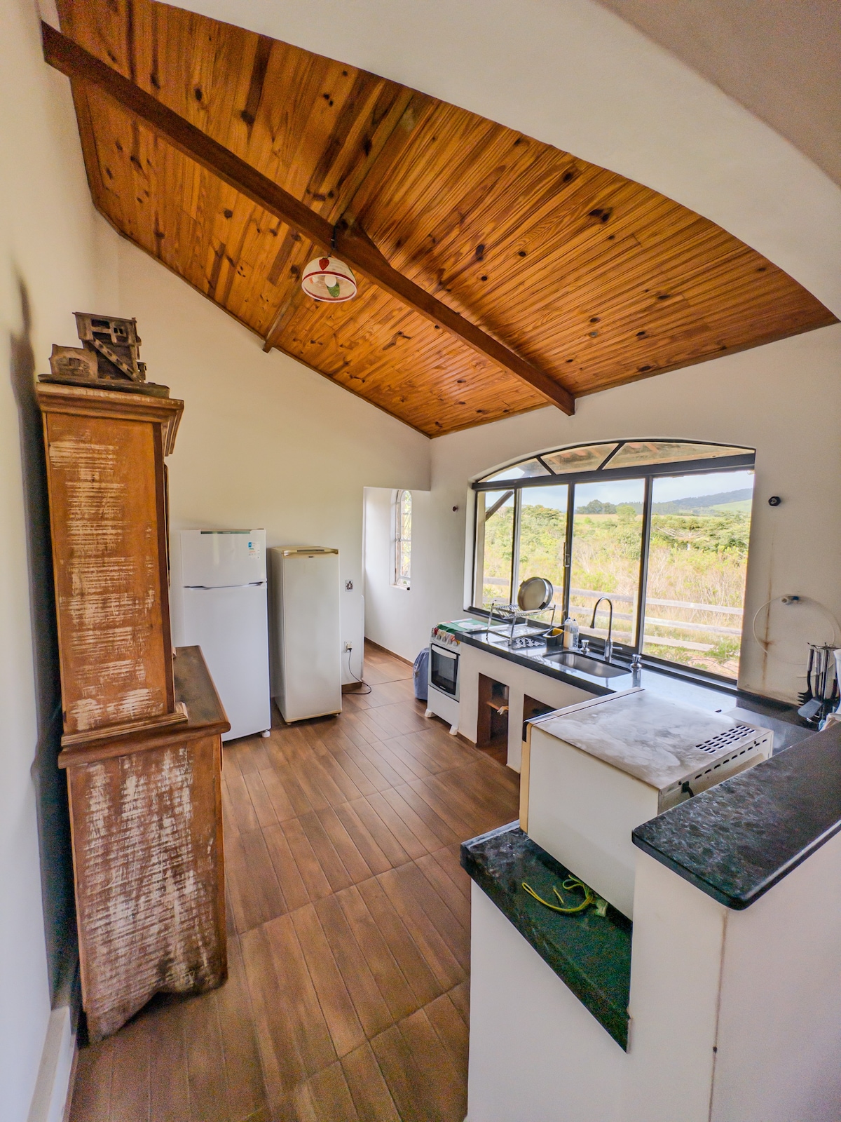 🏠Casa no andar térreo do Sobrado na @chacara_filhosdaterra. Possui: ✅Piscina compartilhada; ✅Campo de futebol; ✅redário; ✅Cozinha completa; ✅Sala com SMART TV; ✅ Wi-Fi disponível; ✅ Armador de rede; ✅ Churrasqueira portátil; ✅ Cozinha secundária com fogão a lenha; ✅Roupa de cama, lençóis, coberta e papel higiênico; e ✅ Todos os utensílios domésticos. ✳️A casa suporta 7 pessoas 🔴 Não disponibilizamos tolhas de banho e rosto, nem sabonete e nem shampoo. * As fotos são da casa de baixo.