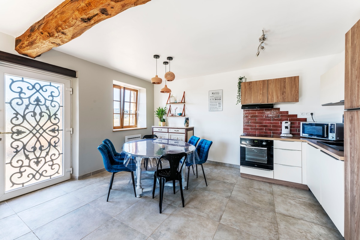 Charmantes Ferienhaus aus Sichtsteinen, eingebettet in die Hügel des Beaujolais, zwischen Weinbergen und Kirschbäumen. Komplett mit Geschmack und hochwertigen Materialien renoviert, bietet es Ihnen allen Komfort, um sich in der Ruhe der Landschaft zu entspannen und den kleinen privaten Garten mit Bäumen zu genießen. Nur 1/2 Stunde von Lyon entfernt, können Sie die Weinberge, die Dörfer aus goldenen Steinen oder viele Wanderungen zu Fuß oder mit dem Fahrrad entdecken. Elektrische Ladestation vorhanden. Wir freuen uns darauf, Sie empfangen zu dürfen.