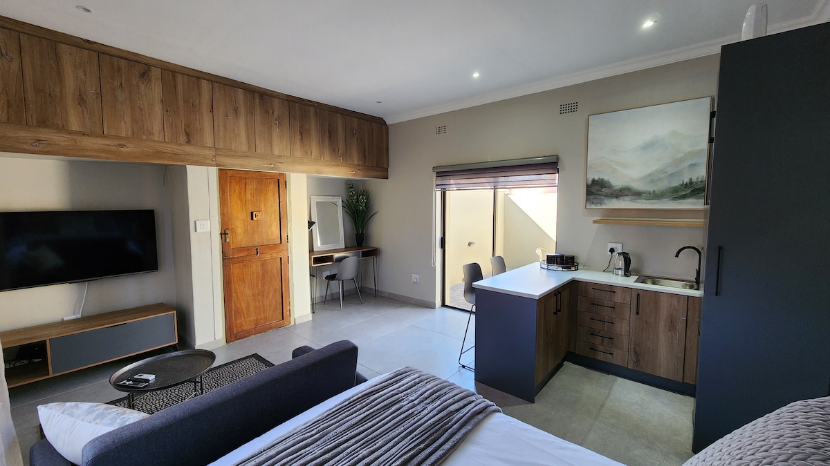 Dieses gemütliche Apartment mit 1 Schlafzimmer bietet 1 Badezimmer, einen offenen Wohnbereich und eine voll ausgestattete Küche. Die Unterkunft verfügt über eine Klimaanlage, Premium-DStv und kostenfreies WLAN. Gäste haben auch Zugang zum Pool des Gastgebers.