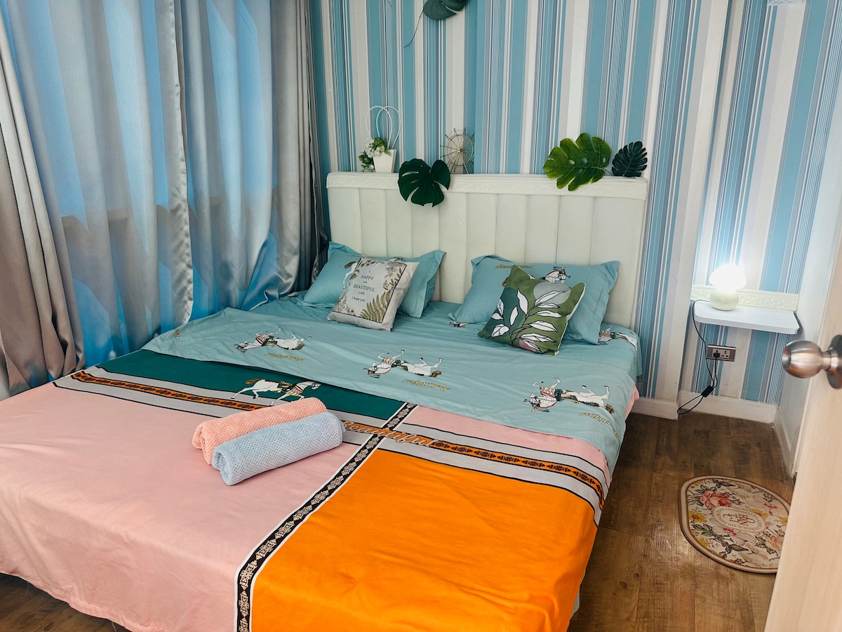 Dies ist der perfekte Ort für den Urlaub, du kannst den Strand direkt erreichen, den großen Wasserpark und viele Einrichtungen genießen. Zimmer - 1 Kingsize-Bett (6 Fuß) - eingebaute Küche mit Dunstabzugshaube & Elektroherd - Kühlschrank, Mikrowelle, Wasserkocher - Swimmingpools im Wasserpark-Stil mit 2 Schiebereglern - künstliche Welle (nur am Wochenende) - Indoor-Therapiepools - Riesiger Fitnessraum, Yogaraum, Boxraum - Spielzimmer - Kinderclub - Zugang zum Strand