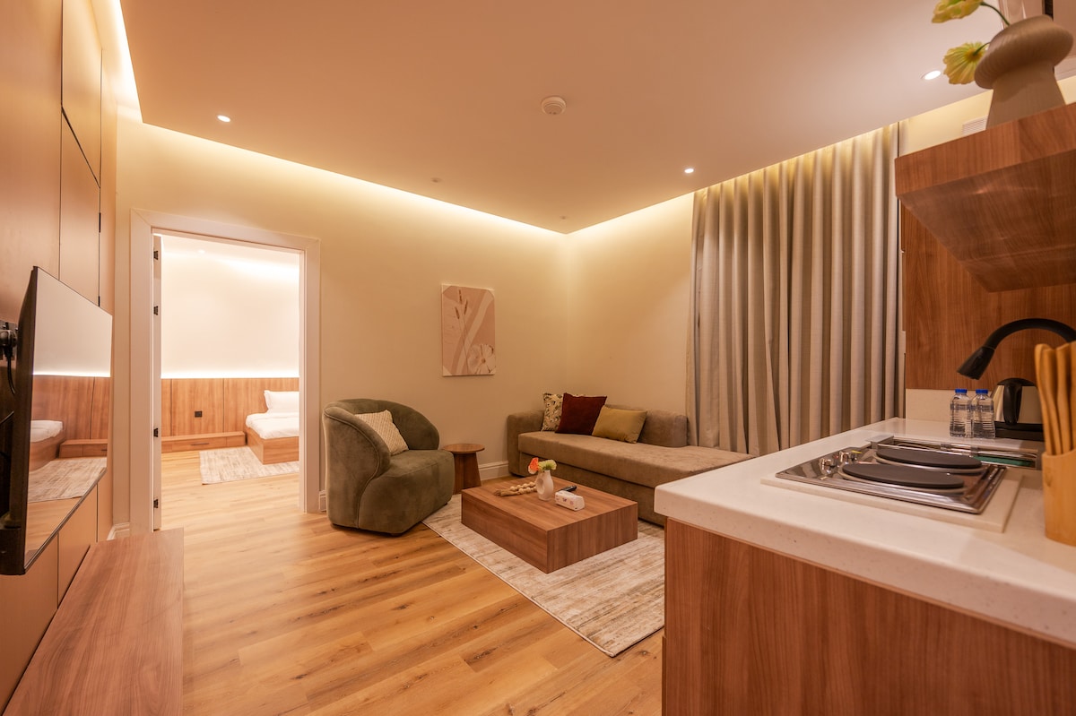 Luxuriöses Zimmer und Wohnzimmer mit intelligentem Eingang