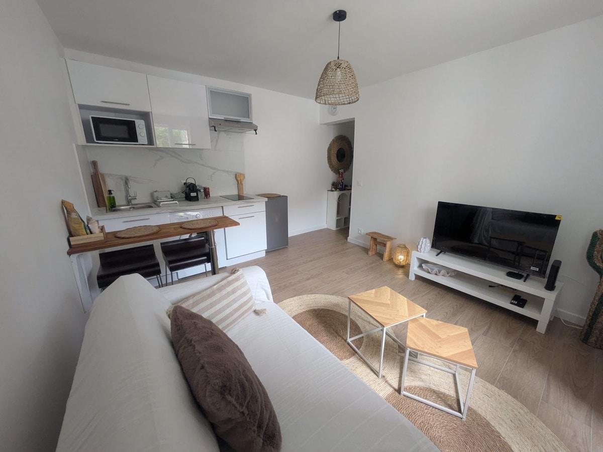 Agréable studio entièrement rénové de 20m2, situé au rez de chaussée d’une résidence calme et verdoyante. Il vous séduira par sa modernité, ses équipements et son confort. Il est équipé d’un lave linge séchant, d’une cuisine full équipée (four, frigo, plaque à induction, hotte..), d'une télévision ainsi que de tous les équipements nécessaires pour faire de votre séjour un moment agréable