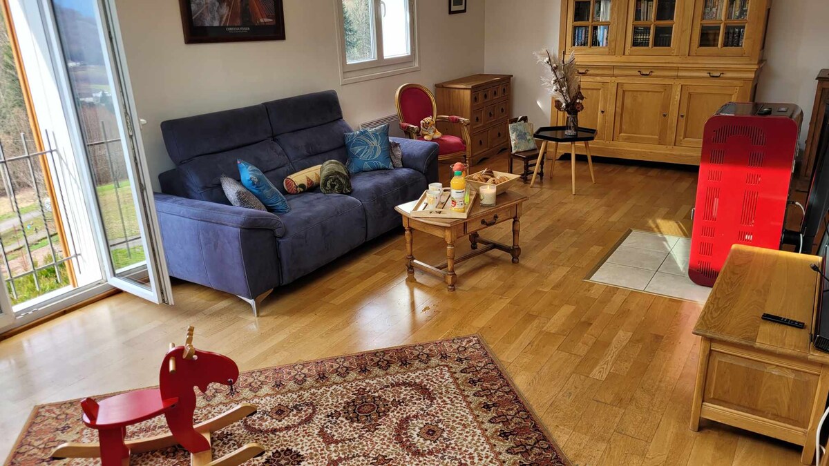 Venez découvrir notre appartement situé au bord de la Moselotte, sur la Cascade des Graviers. À seulement 200m de la voie verte et à 10 minutes à pied d'un plan d'eau avec parc aquatique en été. Il est possible de pêcher dans la rivière longeant le jardin (avec carte de pêche à l'année/séjour/journée). Tous commerces accessibles en moins de 5 minutes en voiture. Profitez des nombreux points de vue et randonnées pour savourer le calme et la beauté des Vosges. Réservation 7 nuits = -10% !