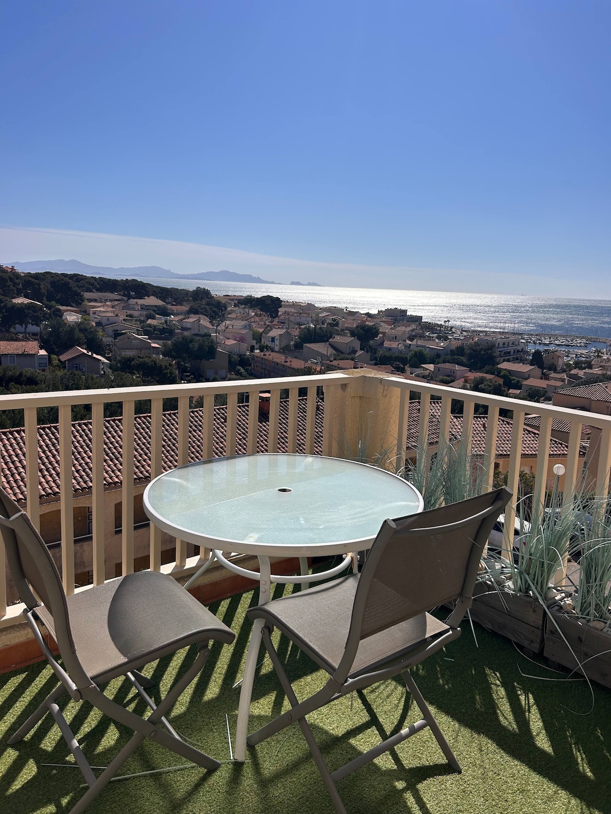 Studio with SPLENDID SEA VIEW (BREATHTAKING). Fully renovated and air-conditioned. Superb terrace (10 m2) overlooking the charming port of Sausset-les-Pins. Ideally located in the center of the village. Everything is within walking distance: beaches (50 m), coastal trail, sailing/ diving clubs, bike rental, restaurants, shops, and train station. Free parking nearby. Perfect for a romantic getaway, a business trip, or sea lovers looking to enjoy water sports and outdoor activities.