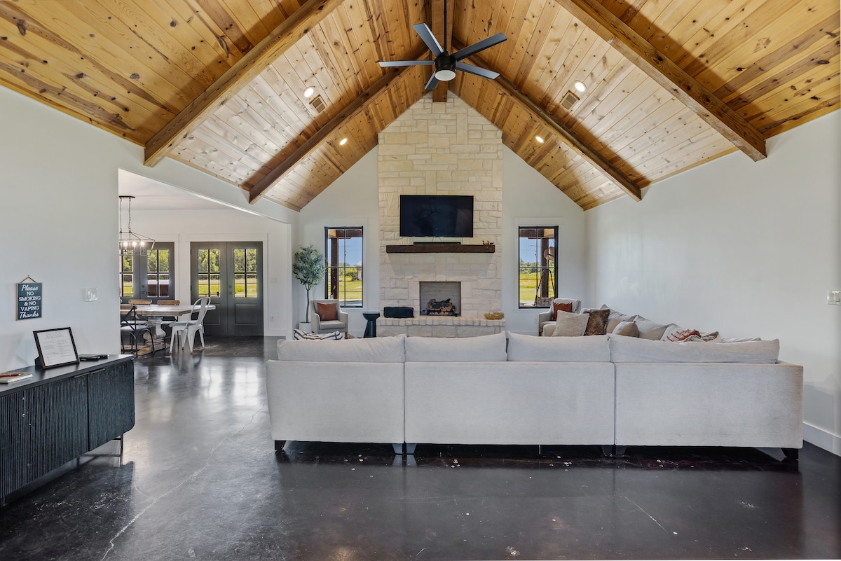 Escape for a relaxing getaway surrounded by charming Texas farm life! Forget you’re just minutes from the hustle of the city when you arrive at The Barn! Enjoy morning coffee with a patio sunrise, farm fresh eggs, llamas & longhorns. Whether it's a good book in the cozy living room or sweet tea on a patio rocker, relaxation awaits! You are sure to make memories grilling, playing yard games, and making fire pit smores under the starry night sky!