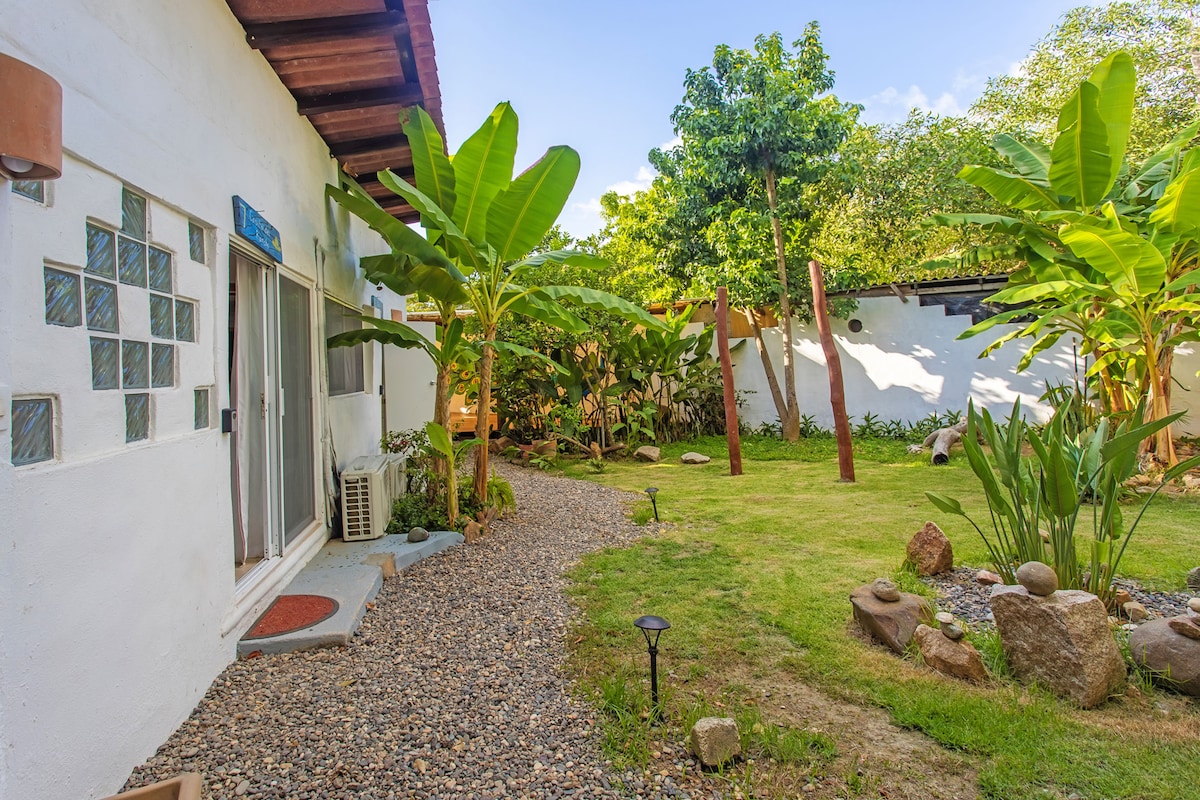 Just a short walk from the beach, Casita Rubia is our lower garden-level unit, offering a refreshed and tranquil escape in San Pancho. Recently updated with warm, modern touches, this bright one-bedroom casita sits below two new upper suites and overlooks a lush garden and shared pool. Enjoy the pool loungers or your private bistro set outside the king bedroom. A full kitchen, dining table, and fast Starlink WiFi await you—and pets are warmly welcomed!
