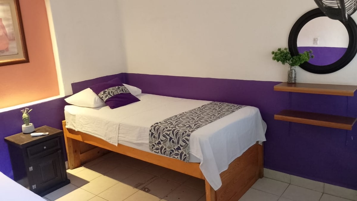 Bitte besuche uns an unserem günstigen Standort in der Innenstadt, nur wenige Gehminuten vom Strand, Malecón, Mercado Municipal Rio Cuale, La Islita, Parroquia de Nuestra Señora de Guadalupe und der Romantic Zone entfernt. Genieße dein privates Zimmer mit einer Gemeinschaftsküche, einem Gemeinschaftsbad und gemeinsamen warmen Duschen.