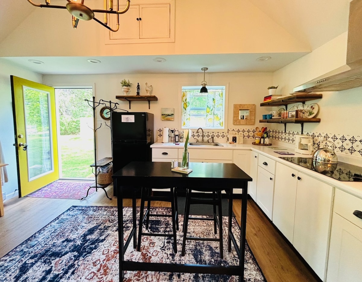 Willkommen in deiner Gartenoase. Dein zweites Zuhause. Diese elegant gestaltete Gartenwohnung im Kronjuwelviertel von South Portland, Sylvan Sites, ist geräumig, ruhig und einladend. Setz dich in deine private Sauna und genieße den reichlichen Vogelgesang der Nachbarschaft von deiner privaten hinteren Terrasse aus, während du deinen morgendlichen Kaffee schlürfst. Nur die Straße hinunter (5 Minuten) zur Innenstadt von Portland, Willard Beach oder Knightville und 10-15 Minuten zu den Stränden von Scarborough und Cape Elizabeth.