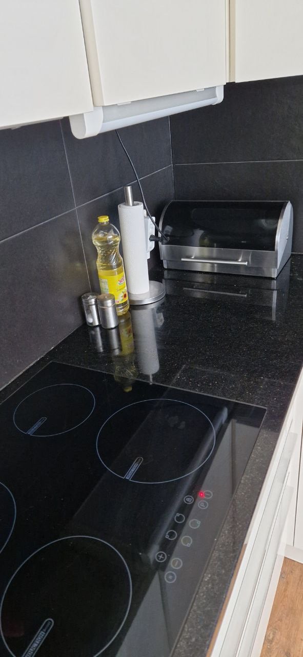Unsere Gäste verfügen über eine eigene Wohnung, die jedoch immer nur an eine Partie vermietet wird. Sie verfügt über zwei Doppelbetten und ein Einzelbett. Babybett auf Wunsch. Die Wohnung liegt im 2. Stock, erreichbar über Treppen (kein Lift), dafür sehr ruhig und mit toller Aussicht auf Munot, Rhein und Schaffhausen. Die Stadt Schaffhausen ist zu Fuss in 10 Minuten zu erreichen. Parkplatz für Ihr Auto wird Ihnen von uns zur Verfügung gestellt. Grosse Dachterrasse für ungestörtes Sonnen.