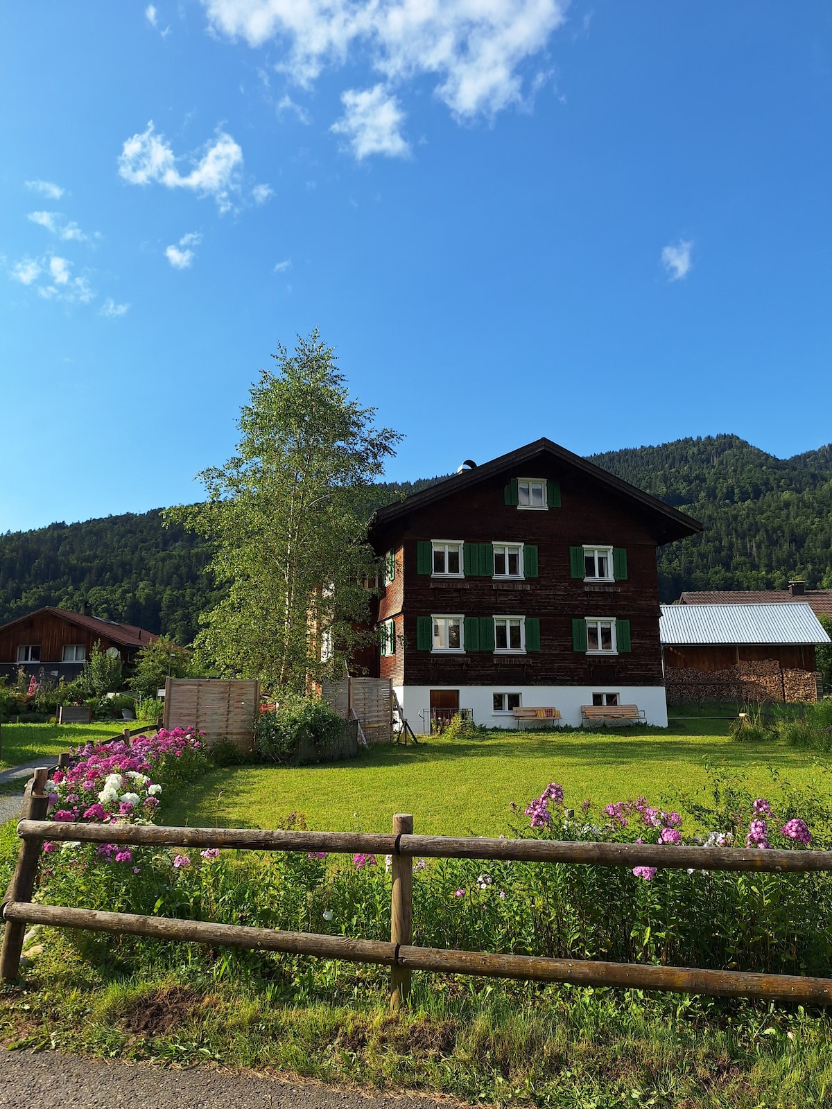 Nur 10 Minuten von Bregenz und See, bieten wir eine großzügige Wohnung an, mit Terrasse zur Entspannung und Sicht auf den Bregenzerwald. Sie können auch autofrei die Lage geniessen. Der Bus fährt halbstündlich direkt vor dem Haus ins Zentrum. Die Wohnung bietet zwei Schlafzimmer, ein Beistellbett für Kleinkinder, eine vollwertige Küche mit hochwertigen Geräten inklusive Spülmaschine und Kaffevollautomat. Wander- und Radwege sind in unmittelbarer Nähe des Hauses.