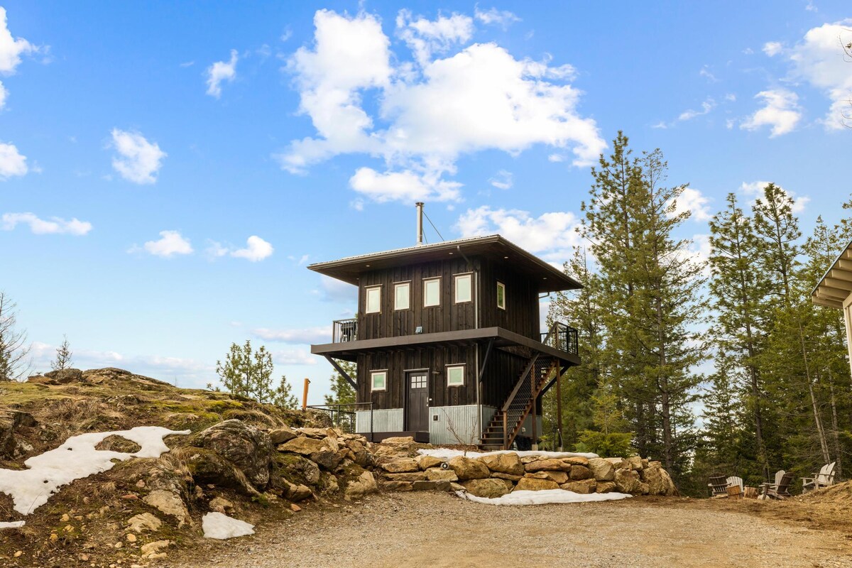 Entfliehe in ein atemberaubendes Gebirgsrefugium für abgelegene Kurzurlaube oder romantische Nächte! Dieser atemberaubende Aussichtsturm, inspiriert von der Architektur des Nationalparks, befindet sich auf einer über 60 Fuß hohen Granitklippe und bietet einen unvergleichlichen Blick auf die Cabinet Mountains, Sandpoint und den Lake Pend Oreille. Dieses beeindruckende Bauwerk liegt abseits der Hauptstraße zum Schweitzer Mountain und ist ein Muss für alle, die ein einzigartiges Erlebnis suchen.