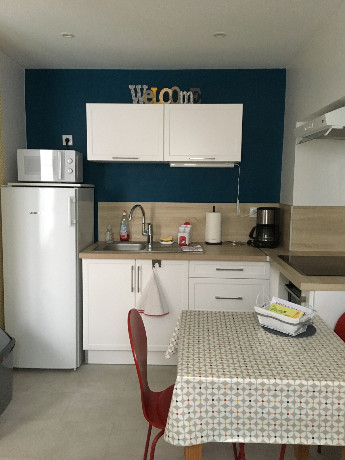 Die Wohnung "Le Jaune Vendée" ist eine neu renovierte 2-Zimmer-Wohnung mit Terrasse im 1. Stock eines kleinen 2-stöckigen Gebäudes, sehr funktionell und bis ins kleinste Detail ausgestattet. Separates und von außen isoliertes Schlafzimmer mit Verdunkelungsvorhängen. Hofseite und sehr ruhig für einen besseren Schlafkomfort, nicht zu vergessen das "Kingsize" -Bett. Ideal gelegen, mit allen Annehmlichkeiten in der Nähe und kostenlosen Parkplätzen vor dem Gebäude. Self-Check-in für maximale Flexibilität möglich