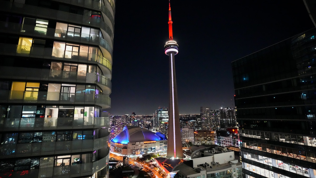 Gemütlicher CN Tower mit Blick auf den Sonnenuntergang