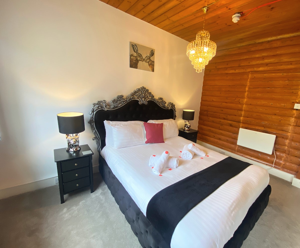 Warren Suite at Kaoglen Lodge – a luxurious retreat nestled in the foothills of Cairngorms National Park, where there are breathtaking views. This elegant suite features a master bedroom with a king-size bed, a spacious entertainment room with a projector TV, a fully equipped kitchen, and a stylish bathroom. Step outside to your private hot tub and soak in the beauty of the landscape, or enjoy the fresh air in the suite’s outdoor space, fully enclosed for your furry companion.