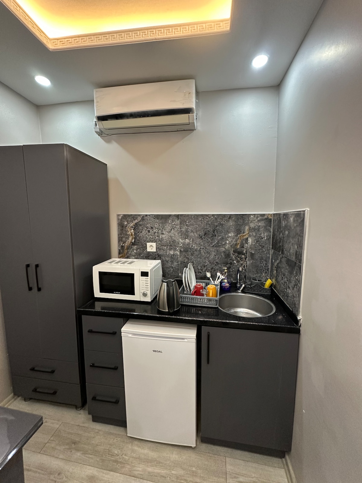 During your accommodation in the heart of Florya, one of the most livable and central districts of Istanbul, you will have 1 spacious bedroom, a fully equipped kitchen, living & dining room, a spacious balcony, pool view, and a luxurious bathroom with the comfort of your home. BayMari Suites has been carefully decorated so that you can feel the comfort of your home during your stay in Istanbul. - 24/7 Security -Free Private Parking -Fast Wifi -Reception -Pool View -Spacious Private Balcony