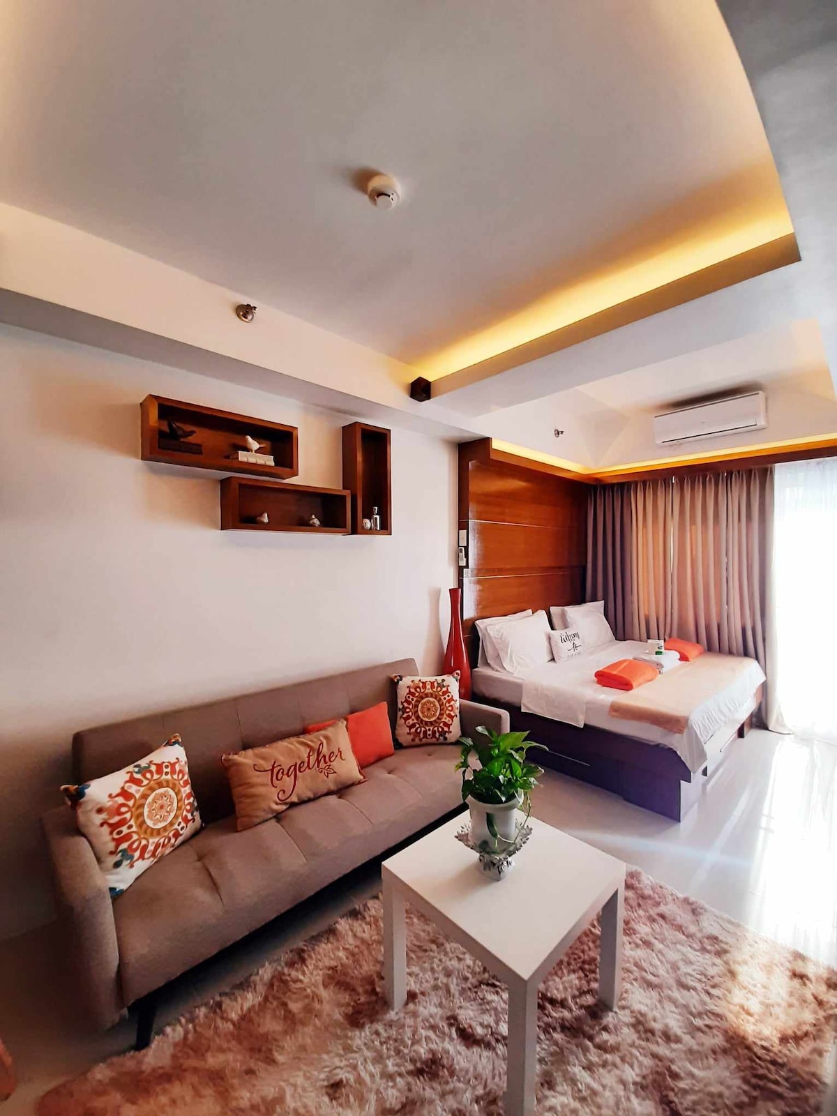 Unsere Unterkunft ist eine voll ausgestattete Studioeinheit in einem brandneuen Wohnturm im Mall of Asia (MOA) Komplex. Wir haben den Raum wie ein 5-Sterne-Hotelzimmer mit einem offenen, warmen und heimeligen Ambiente gestaltet. Gemütlich, modern, freundliches Ambiente und einladend sind die Begriffe, die die Wohnung am besten beschreiben. Willkommen!