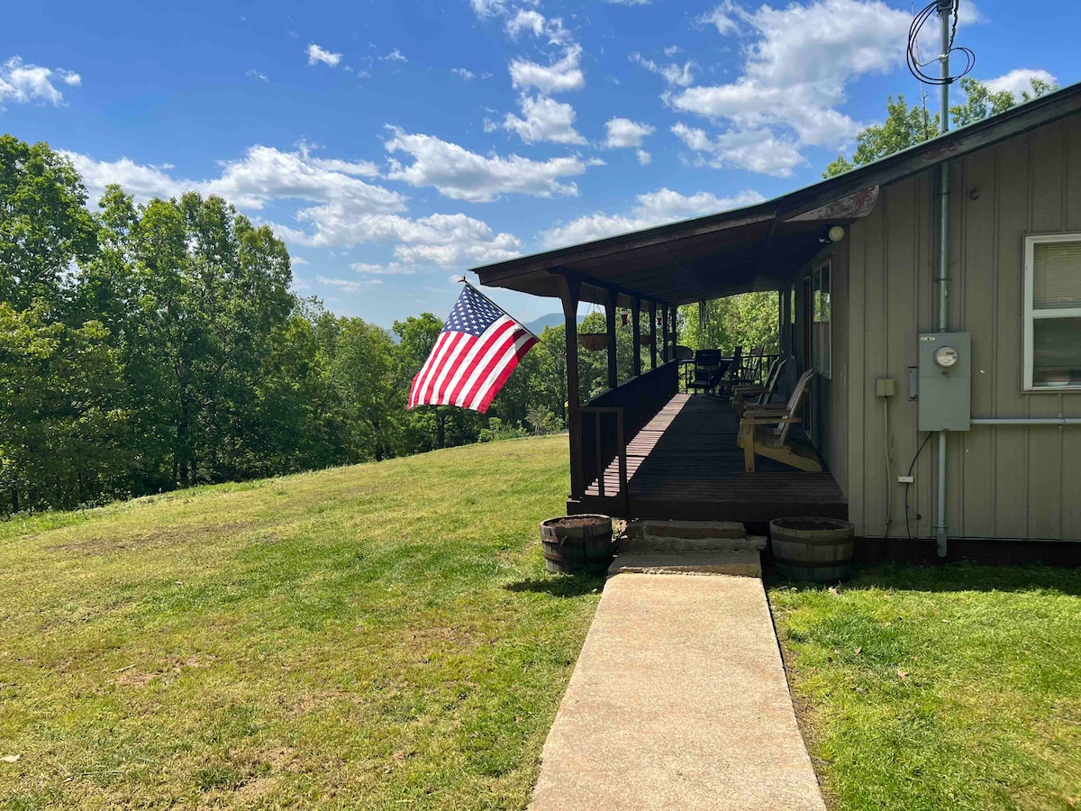 Das Mountaintop Cottage ist ein renoviertes, einzigartiges Haus mit atemberaubendem Blick von seinen Terrassen. Der dunkle Himmel ermöglicht einen ruhigen Abschluss des Tages, während du die glühende Glut in der Feuerstelle genießt. Kuschel dich neben den Gaskamin im gemütlichen Wohnzimmer für ein Nickerchen oder um einen Film auf dem Breitbildfernseher zu sehen. Dein Komfort ist unser wichtigstes Anliegen. Genieße Wandern, Kajakfahren, Naturwunder und atemberaubende Landschaften im schönen Ozark-Gebirge!