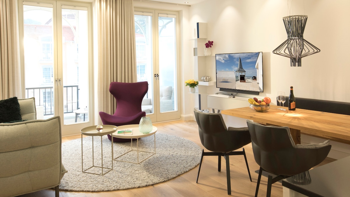 Modernes Design trifft fantastische Lage: Das 89m² große Appartement 'YOLO' bietet Platz für 2-5 Personen und befindet sich im exklusiven Appartement Haus „FIRST Sellin“, das 2018 neu eröffnet wurde. Das FIRST gehört zu den ersten Adressen des Ostseebades Sellin und ist nur einige Meter vom Hauptstrand und der historischen Seebrücke entfernt. Einzigartige Highlights sind das beheizte Panorama-Schwimmbad und die Saunen auf dem Dach des FIRST Sellin, sowie der Außenpool in der Dünenlandschaft.