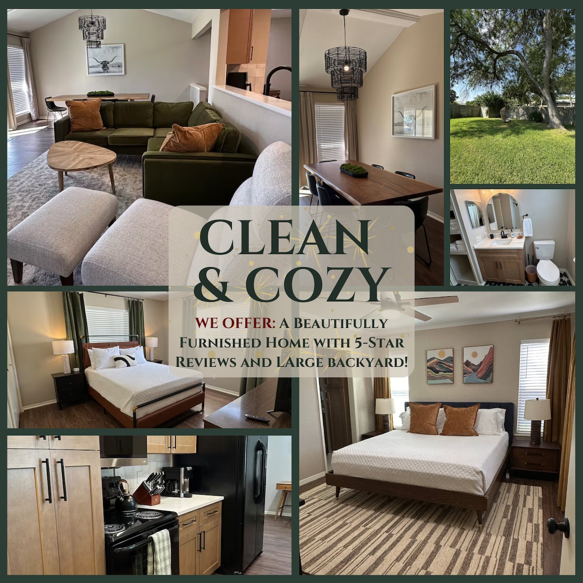 Enjoy a clean, spacious home in a quiet, safe neighborhood—perfect for families, small groups, or longer stays. Whether you’re visiting, relocating, or exploring the San Antonio area, this home offers the comfort and privacy you need to truly settle in. • Fully equipped kitchen • Quiet residential location • Easy access to San Antonio • Close to shopping, dining, and highways. • Convenient to Randolph AFB and nearby business areas • Close enough to attractions, away from the noise.