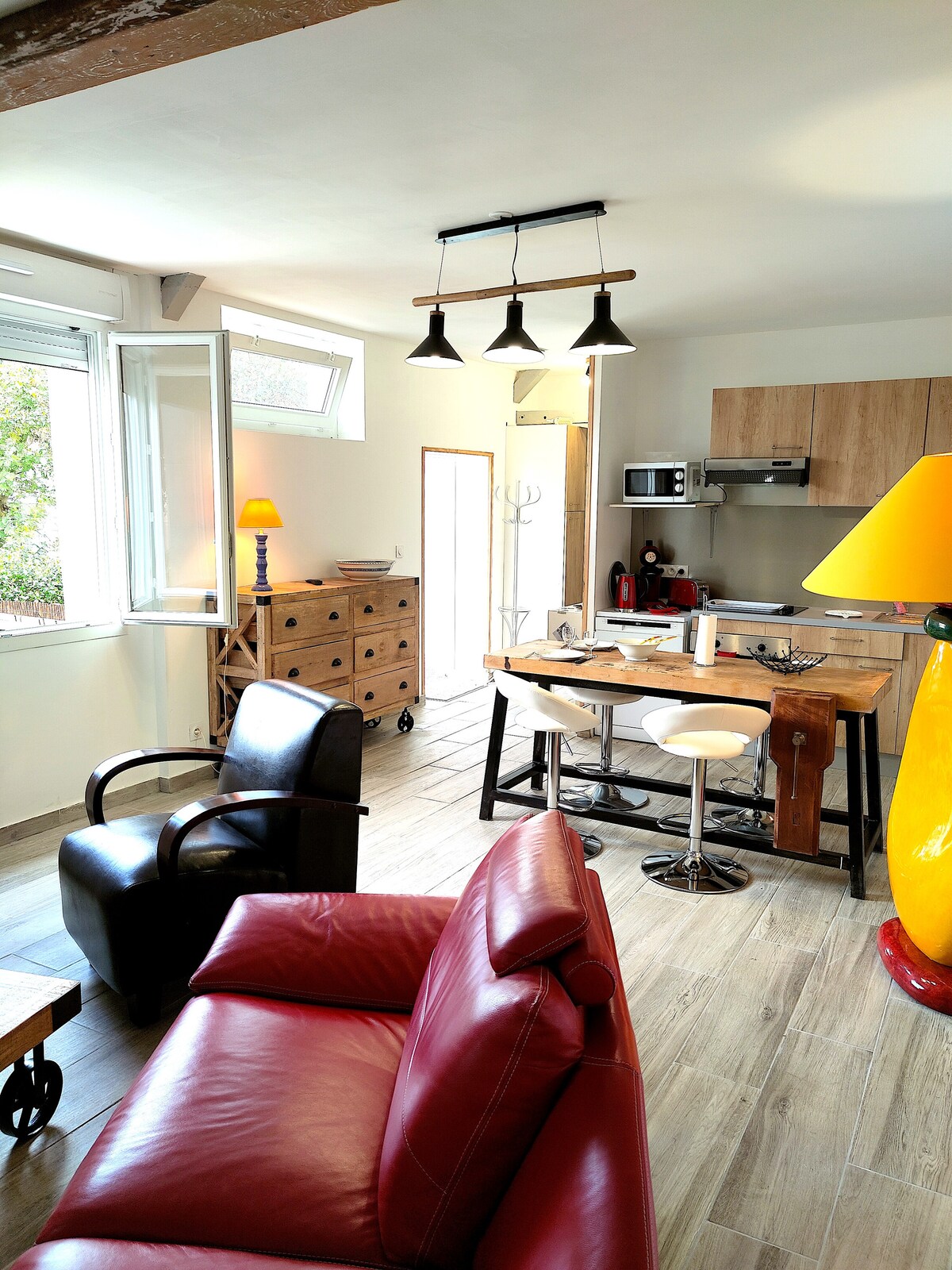 Komfortable und moderne 2-Zimmer-Wohnung im 2. Stock eines traditionellen Bagnèrais-Gebäudes im historischen Stadtzentrum von Bagnères de Bigorre. Der Südbalkon bietet einen herrlichen Blick auf den Marktplatz und die Berge dahinter. Die Küche ist gut ausgestattet, die Betten sind komfortabel und du bist perfekt gelegen, um den beliebten Samstagsmarkt, Aquensis, lokale Geschäfte, Cafés und Restaurants zu genießen.