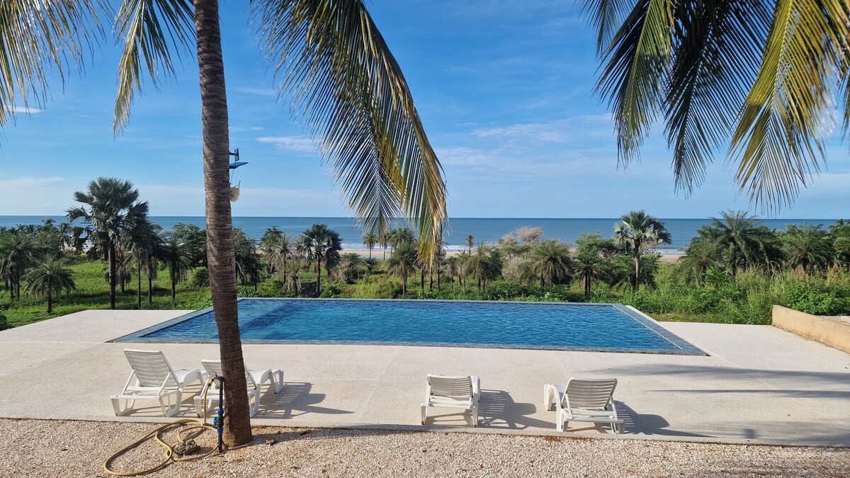 Ein familienfreundliches Ferienhaus im ruhigen Popenguine. Unser Haus liegt direkt über dem Strand und bietet von überall im Haus eine herrliche Aussicht. Umgeben von Bougainvillea und üppigen Bäumen fühlt sich das Haus privat und abgelegen an. Die große überdachte Terrasse im Erdgeschoss ist der Ort, an dem Sie die meiste Zeit verbringen werden, aber wenn Sie drinnen gehen müssen, sind Sie bequem und kühl.