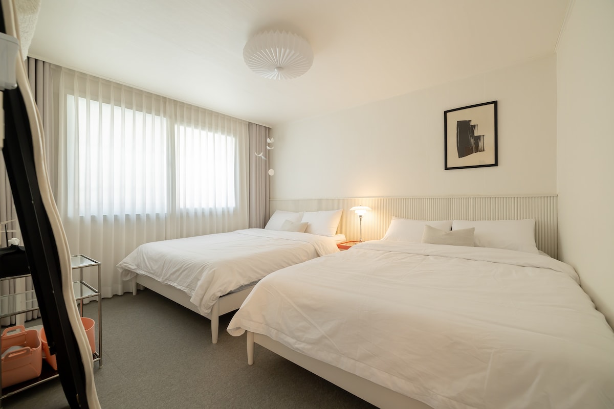 Zwischen einer alten Wohnung und einem urbanen Gebäude gelegen Es ist eine Unterkunft, die mein Geschmack durchdrungen hat, was ich selbst entworfen und repariert habe. Für mich ist es ein sinnvollerer und komfortablerer Ort als anderswo. Ich hoffe, es wird hier eine wertvolle Erinnerung sein. --- 5 Minuten von der Unterkunft entfernt Western Dome, Lake Park und Madu Station. Mart und Komfort sind in der Nähe, und öffentliche Verkehrsmittel sind bequem. --- Zugang für Gäste. Du kannst Filme und Dramen bequem genießen, indem du den 65-Zoll 4K QLED TV, Netflix, Disney und YouTube verbindest. (26py) Schlafzimmer 1 1 Kingsize Bett, 2 Schlafzimmer - 2 Einzelbetten. Die 3 Meter lange Küche ist einfach zu kochen und familienfreundlich. Wir haben Bluetooth-Lautsprecher und Styler. Handtropfkaffeekocher und Bohnen sind vorhanden.