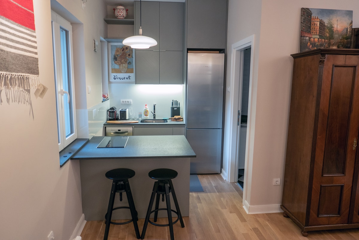 Die exklusiven „City Garden Apartments“ befinden sich in der Hauptfußgängerzone und umfassen zwei identische Luxuseinheiten von jeweils 60 m² (blaue und grüne Wohnung) mit einer authentischen Kombination aus modernem und Retro-Design und einem erstaunlichen eingezäunten Garten. Ruhiger Ort & magische Atmosphäre. Die Wohnungen sind komplett ausgestattet, um den höchsten Premium-Standards zu entsprechen. Aufgrund der perfekten Lage sind alle wichtigen Sehenswürdigkeiten, das Nachtleben, Einkaufsmöglichkeiten, Geldautomaten, Restaurants, Märkte, Flüsse und die Fußgängerzone nur eine Minute zu Fuß von den Apartments entfernt!