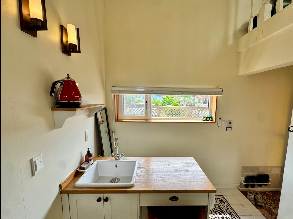 Es befindet sich in Hadori, einer ruhigen ländlichen Stadt im Osten der Insel Jeju. Die Unterkunft ist ein mehrstöckiges Gebäude, daher dürfen Vorschulkinder aus Sicherheitsgründen nicht übernachten. Wenn Sie die Anzahl der Kinder überprüfen, teilen Sie uns bitte per Nachricht mit, ob Sie ein Grundschüler sind. In einer kleinen Stadt namens Hadori führen wir das 'Hadori Small Restaurant' und die Unterkunft 'Pravita' zusammen. Es gibt ein Schutzgebiet für Zugvögel innerhalb von 2-3 Minuten zu Fuß und einen abgelegenen Hado-Strand innerhalb von 10 Minuten zu Fuß, was es zu einem großartigen Ort macht, um einen Morgenspaziergang zu genießen. Seongsan Ilchulbong Peak und Seongsan Port sind 15-20 Minuten mit dem Auto entfernt, was es für Udo und Eastern Travel bequem macht. Aufgrund der Natur der Landschaft können Insekten auftreten. Wenn du Angst vor Insekten hast, gib dies bitte bei der Buchung an. Bitte beachte, dass Rückerstattungen aufgrund von Insekten nicht möglich sind. Wir bereiten ein einfaches Frühstück (Brot, Eier) und Filterkaffee für Sie vor. Bettwäsche wird sowohl im Schlafzimmer im ersten Stock als auch im Schlafzimmer im Dachgeschoss bereitgestellt, und es wird keine zusätzliche Bettwäsche bereitgestellt. ※ Bei Buchung für 5 Personen bereiten wir Bettwäsche für 1 Person separat vor. ※
