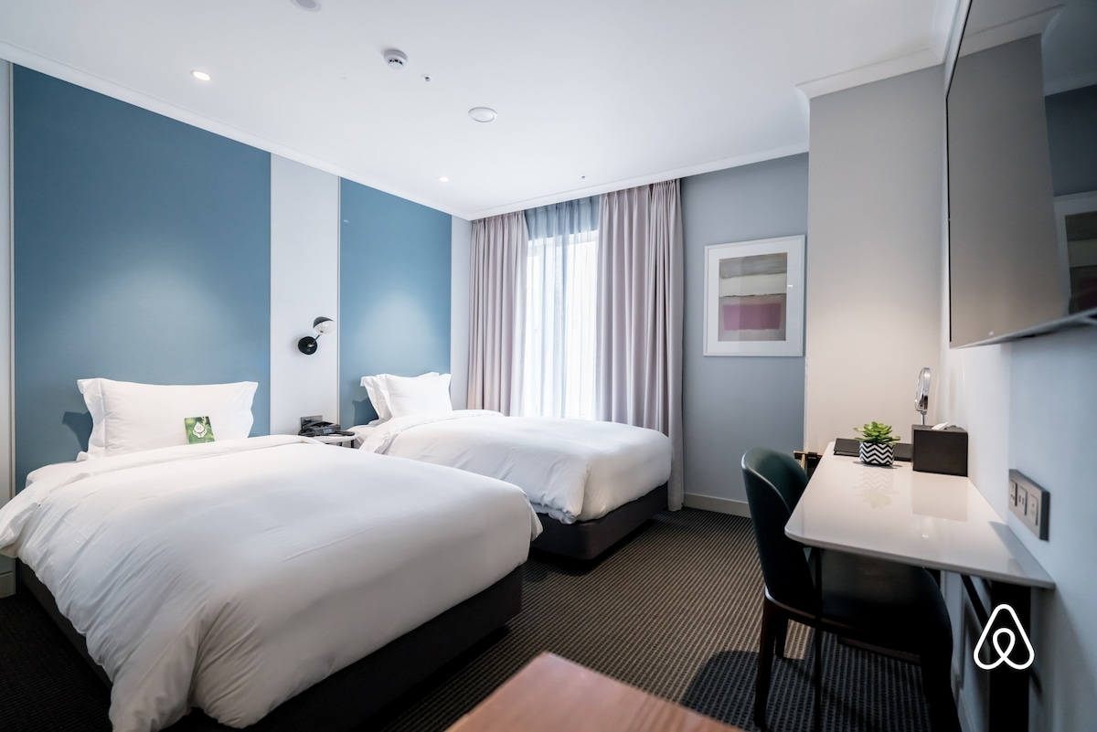 [NEU!]/Deluxe-Zweibettzimmer/Hotel Modak Namdaemun/Namdaemun, Rathaus-Station, Seoul-Station zu Fuß erreichbar/Hotelbettwäsche, Parkplatz verfügbar