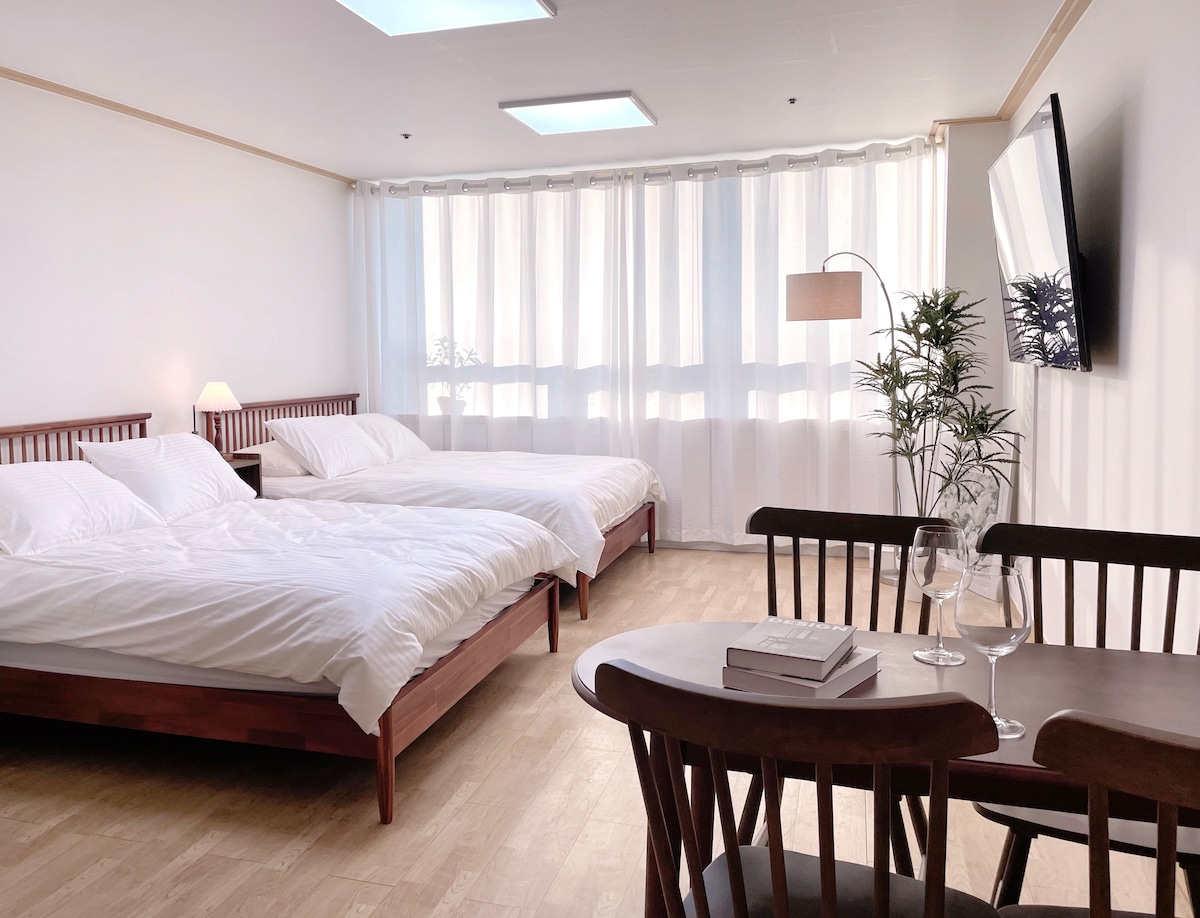 A newly built Residence within 3 minutes of 2 subway stations *Reception & Luggage Storage & Guest Lounge: B1F (English & Chinese-speaking staff available, breakfast service (paid)) *non-smoking property. fine: 150,000 won. *A Coffee machine & welcome coffee capsule, bidet ,drinking water purifier *Everything you need, just like home. *2 guests will use one bed. If you prefer separate beds, please request in advance. (paid) *For 3 or more people, a sofa bed will be set up as a bed.
