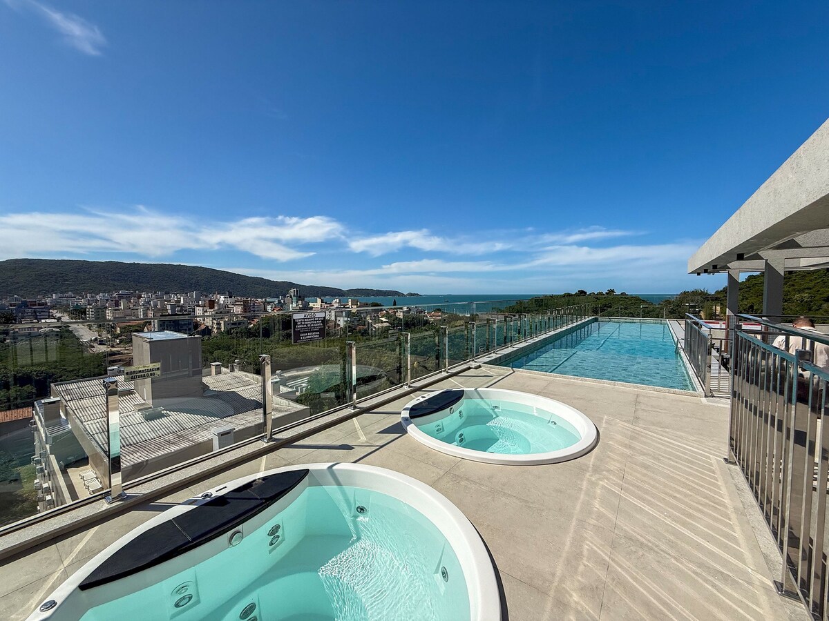 Panoramablick auf das Meer in Bombinhas mit Whirlpool