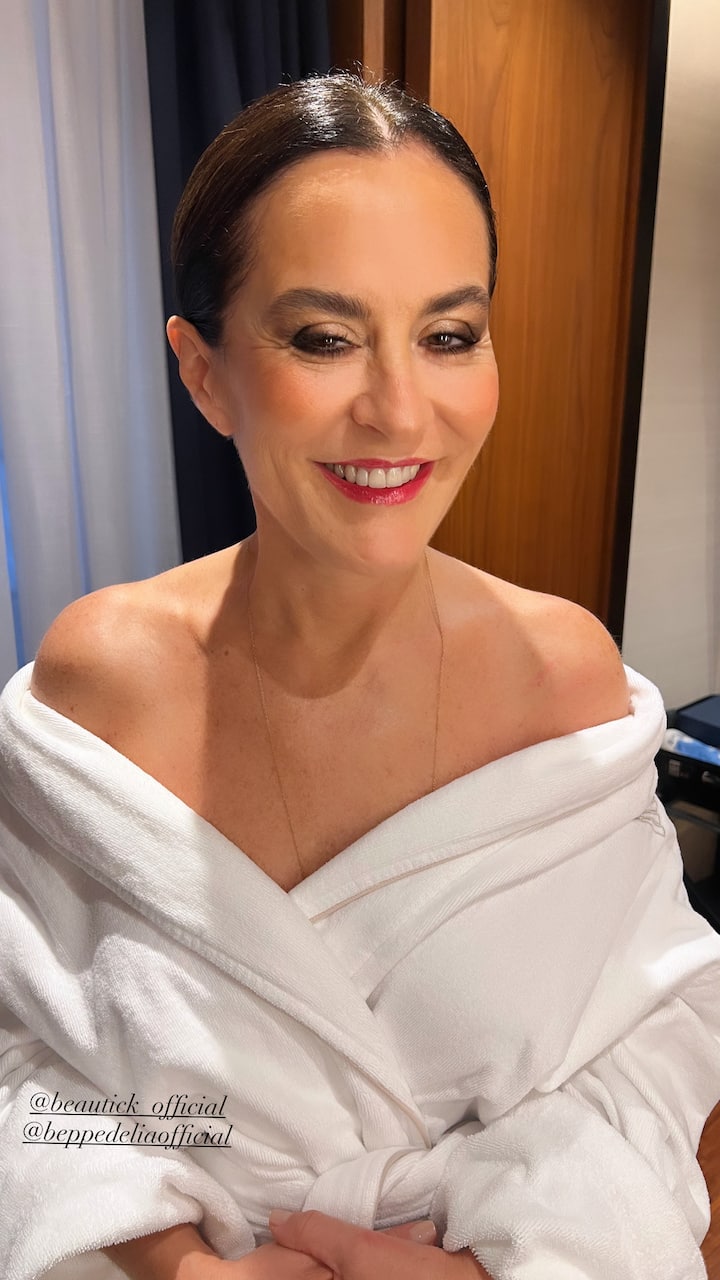 Es ist ein Vorschlag, der darauf abzielt, die natürlichen Gesichtszüge zu betonen und hervorzuheben, damit sie mit dem Kleid und dem Kontext der Veranstaltung harmonieren. Die Behandlung beinhaltet das Definieren aller Gesichtspartien mit leichten, überlappenden Techniken, ohne auf künstliche Effekte zurückzugreifen.Der Vorschlag zielt auf ein frisches, helles und raffiniertes Ergebnis ab.