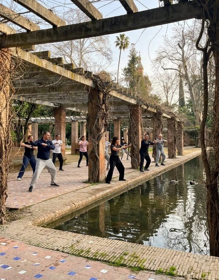 Diese Option heißt „Das Erwachen deiner Energie“ im María-Luisa-Park. Sie verbindet Achtsamkeitswanderungen mit Pausen an berühmten Orten im Park, wie der Plaza de España, der Glorieta de Bécquer, dem Estanque de los Lotos und der Fuente de los Leones, wo die Teilnehmer spezielle Tai-Chi- und Qigong-Übungen, Dehnungs-, Atem-, Gleichgewichts- und Mobilitätsübungen machen.