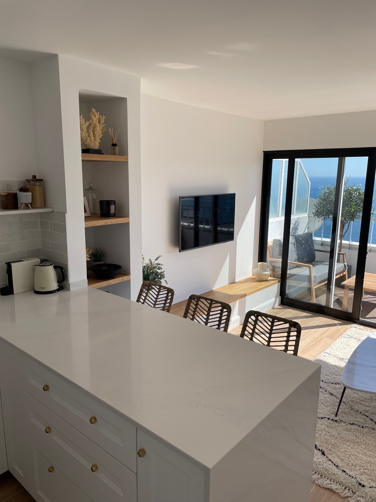Spectacularly located, modern flat, offering 180º unobstructed panoramic views of the Atlantic ocean. The spacious open floor plan and double balcony enable a wonderful holidaying experience. The beach is accessible by foot (5 minutes). Free parking. Our associate in Sesimbra will meet you at the building main entrance to let you in and hand over the keys. My father Jose, a co-host, will assist you via email/mobile/WhatsApp - his mobile number is printed on the reservation pdf. 28513/AL