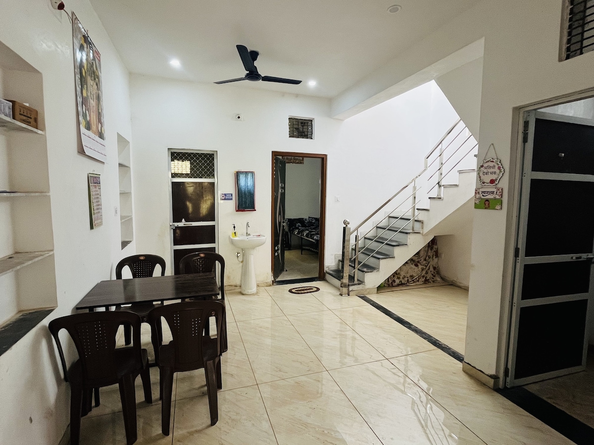 Forget your worries in this spacious and serene space. With astounding views of Statue of Belief and surrounding hills, the place is located in the town of Shreenath Ji. Located right beside the Udaipur Rajsamand highway, this homestay provides easy access to the local market as well. Spacious patios, accessible terrace and open sides provides a relaxing time away from the hustle and bustle of the city. Accompanying your stay will be on site kitchen support and caretaker for all your needs.