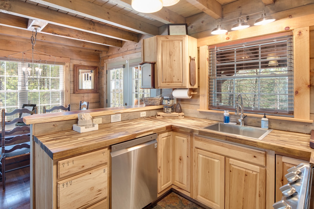 Clean, comfy, & well-appointed cabin atop 5 private, wooded acres. Close to everything the Great Smoky Mountains have to offer. Stocked kitchen, coffee station, dining for 6, w/ whole house water filter (no sulfur smell!). Sparkling clean hot tub, hammocks, grill, & retro arcade games. No carpets! Stay connected w/ super fast WiFi, or disconnect completely & immerse yourself in nature. Perfect for couples, friends, & families. Peaceful seclusion just 20 minutes from attractions. Dogs welcome!