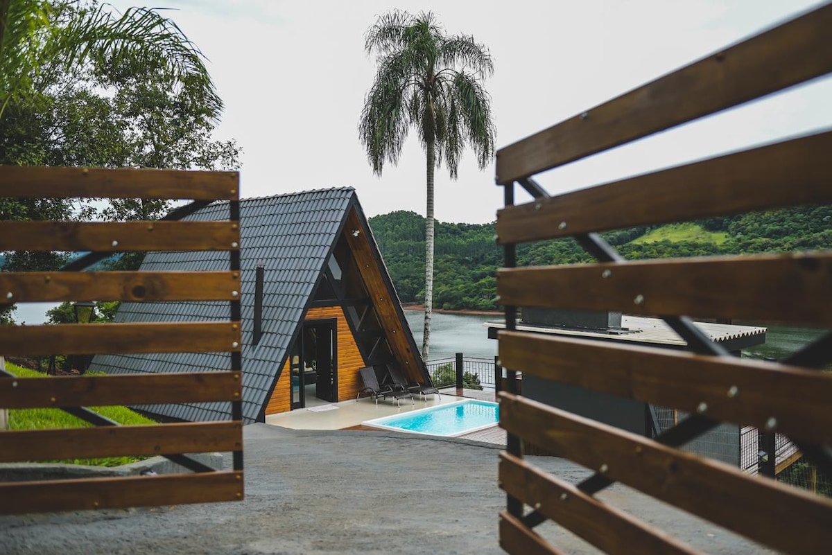 Refúgio aconchegante, cercado de natureza, para relaxar e viver momentos inesquecíveis com pessoas especiais. Nosso chalé acomoda até 4 pessoas. DESTAQUES * Lareira a lenha. * Banheira de hidromassagem interna. * Deck panorâmico com Grill, ombrelone e móveis externos. * Balanço panorâmico. * Prancha de stand Up e caiaque, opcional! cobrado valor a parte! * Trapiche com churrasqueira, bancada com torneira, mesa e rede. * Acesso ao lago. * Cozinha equipada completa. * Piscina aquecida