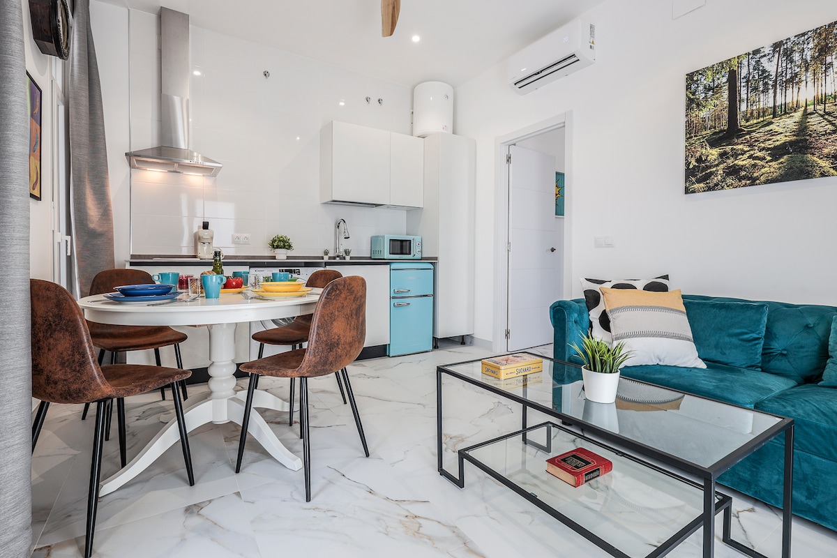 Apartamento nuevo con exquisita decoración en el cual te sentirás como en casa .Consta de todo lo necesario y más para que tengas una estancia estupenda. Se encuentra en un pequeño barrio familia en el que el descanso está asegurado después de un día intenso visitando la ciudad . También podrás relajarte desayunando en la parte exterior donde hay una mesa y sillas ya que en Sevilla el clima lo permite .El aparcamiento es gratuito en la misma calle.