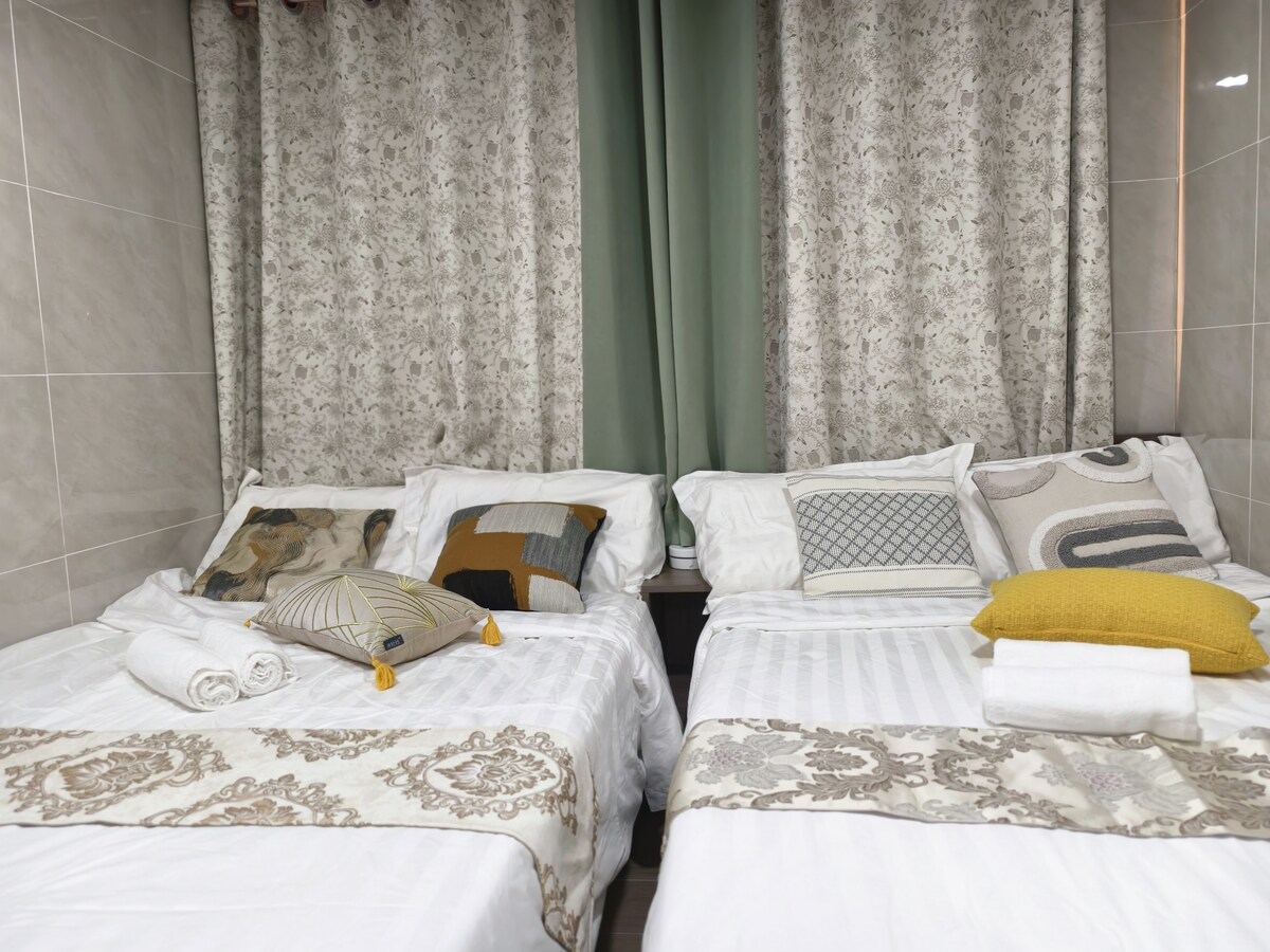Es ist ein gemütliches und komfortables Zimmer, das zwei Personen beherbergen kann. Das Zimmer ist mit zwei Einzelbetten und einem Schreibtisch ausgestattet. Es gibt ein großes Fenster, das viel natürliches Licht hereinlässt. Das eigene Bad ist mit einer Dusche, einer Toilette ausgestattet. Dieses Zimmer ist ideal für zwei Freunde oder Geschwister, die zusammen reisen und einen erschwinglichen privaten Raum zum Übernachten wünschen.Tolle Lage, guter Zugang zu beliebten Geschäften und Restaurants.