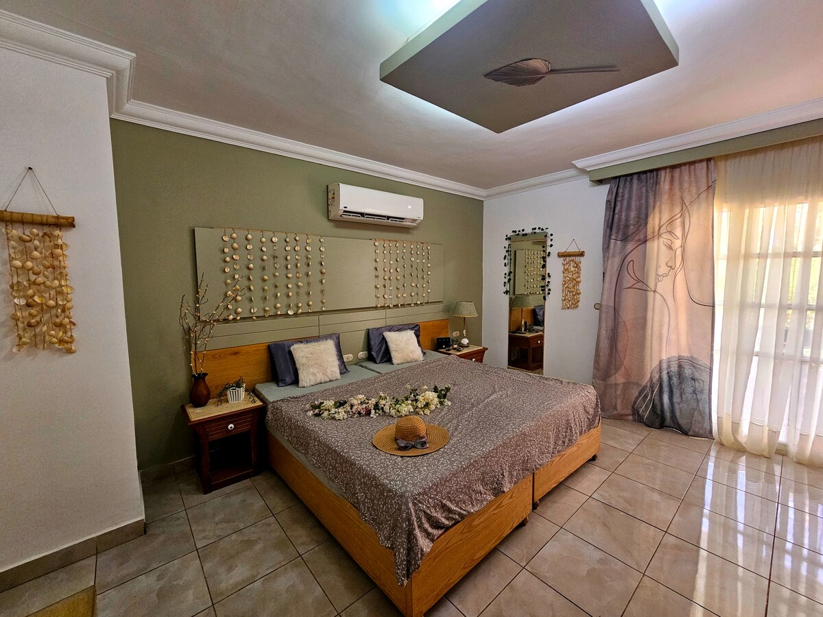 ***** Check-in from 3 PM with 24/7 arrival***** Experience a luxurious getaway at our apartment in Delta Sharm Resort! Discover the wonders of the Red Sea with incredible diving, snorkeling, and stunning sunny beaches! ✔️Just a 10-minute drive to the vibrant beaches of Naama Bay! ✔️ Conveniently located 5 minutes from the historic Old City. ✔️ A short 18-minute drive from the airport.
