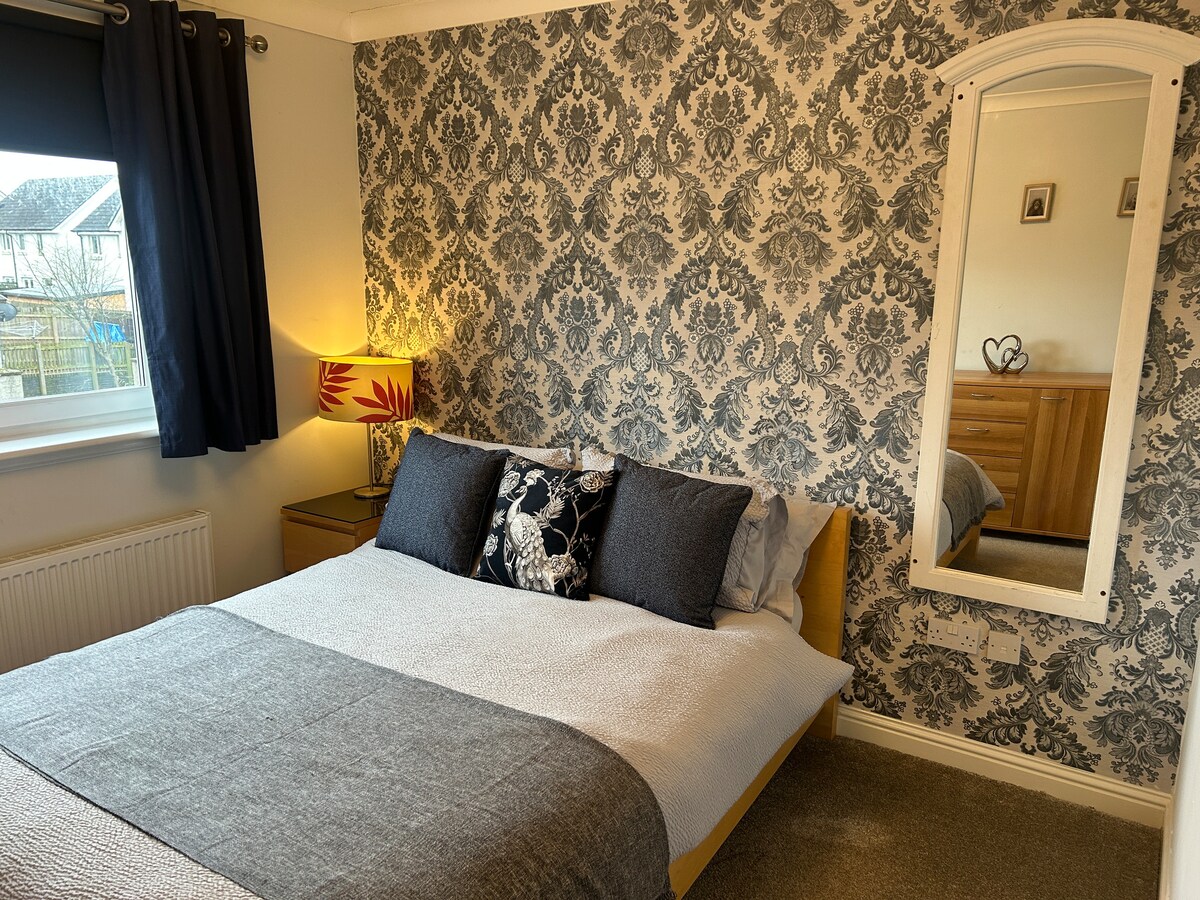 Familienhaus mit 2 Schlafzimmern im East End von Glasgow Der örtliche Bahnhof (7 Gehminuten, 0,4 Meilen) hat eine direkte Verbindung nach Glasgow Central (15 Minuten Fahrt) und zum Exhibition Centre, das die Haltestelle für SSE Hydro, SECC und The Armadillo ist. Alle Zimmer können wie abgebildet genutzt werden und Gäste können gerne den Schminktisch und den Computerplatz nutzen. ***BITTE BEACHTE*** Der hintere Garten ist noch ein unvollendetes Projekt Bei einer Buchung für 4 oder 5 Gäste ist das dritte Bett ein Schlafsofa im Wohnzimmer.
