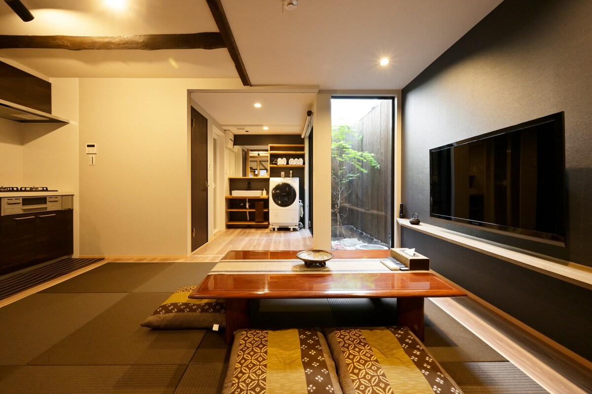 HIBI タウンハウス現代設備京町家貸切、嵐山金閣寺バス停2分 JR円町駅歩 11分近銭湯 Netflix