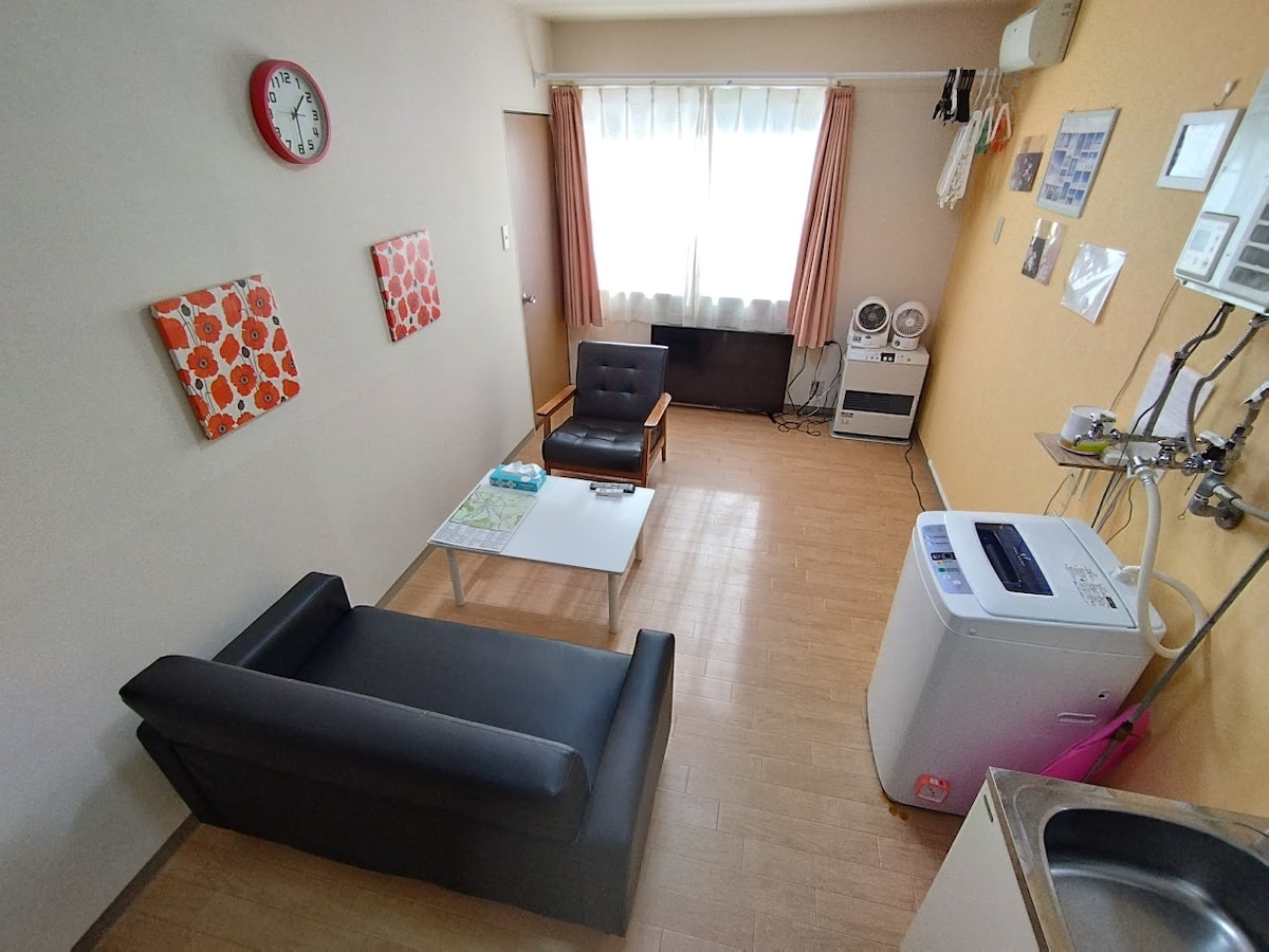 Good location! It takes 12 minutes by subway from the nearest station to Odori Station、Downtown! Cozy room. 1.The room has a double-size futon and a single-size futon. 2.The room has one heater and two fans, and a TV, washing machine, microwave, refrigerator, hair dryer, shampoo/conditioner, and body soap. 3. You can use IH cooker, pot, and pan to cook.(advance reservation required). 4. The nearest subway station is Nango-Jusan(13)Come Station, a 5-minute walk from the room. 5. Free Wi-Fi