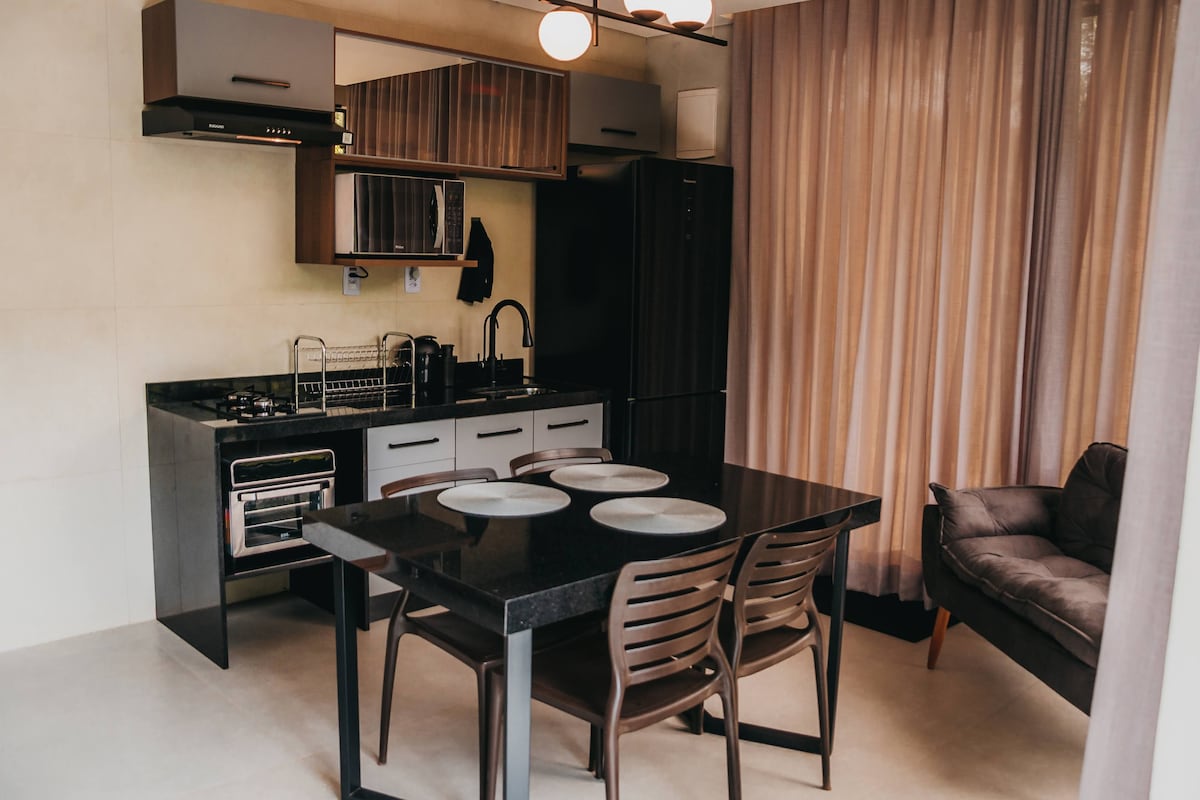 Relaxe neste espaço calmo e cheio de estilo. Olá, sou, sua anfitriã. Vamos conhecer um pouco do espaço que deixei especialmente para você. Espaço com toque moderno. completo pensado em uma acomodação aconchegante. Conta com tv 42 polegadas, com Wi-Fi,YouTube, Netflix, globo play, e muito mais. Sofá retrátil para você se sentir em casa vendo sua série favorita! Cozinha completa com tudo que você precisa para preparar o melhor, máquina lava e seca.